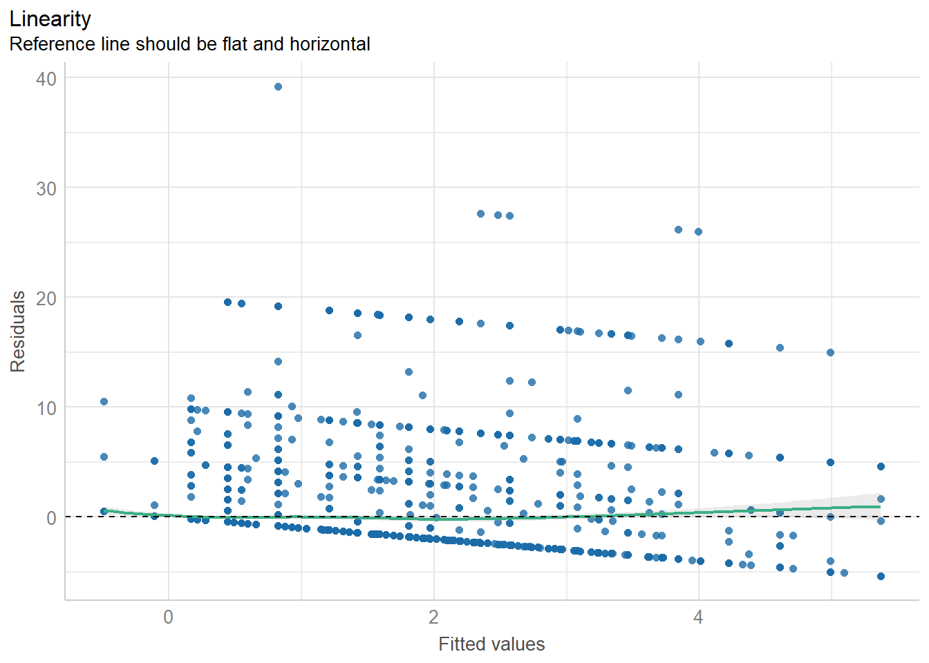 The performance package is a very cool package in R. It facilitates model diagnostics. Then, plots it. Follow along.