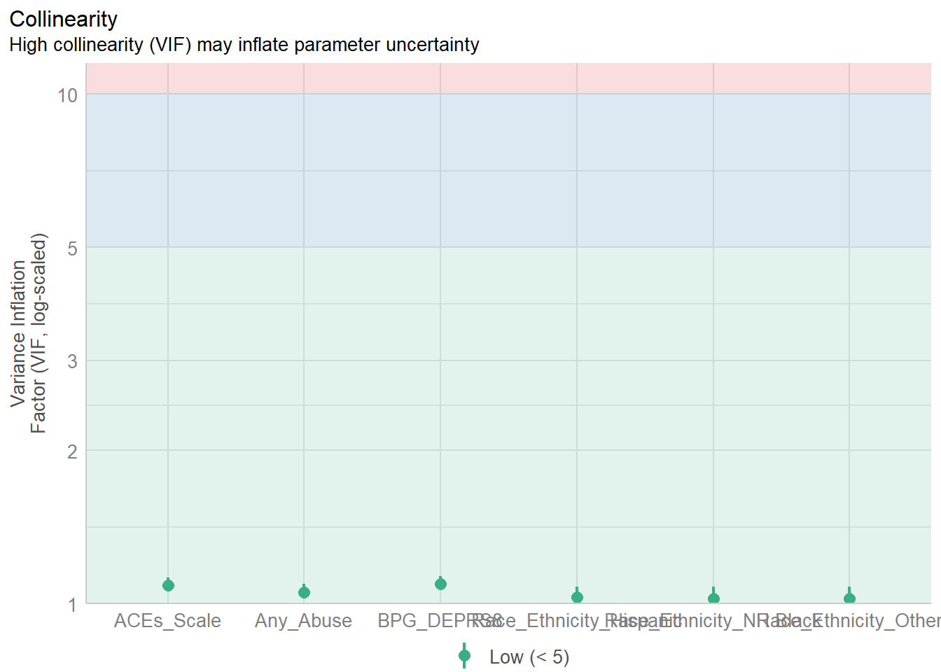 summary(model3)What variable is omitted, and why? How much more of the variance is explained by ACEs_Scale, BPG_DEPRS8, and Race_Ethnicity compared to just Any_Abuse?